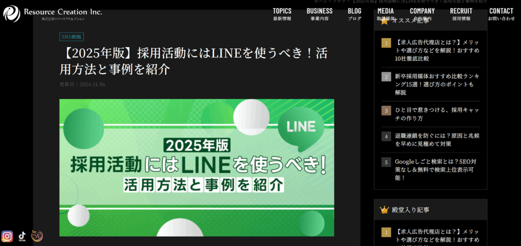 出典:Resource Creation INC.「【2025年版】採用活動にはLINEを使うべき!活用方法と事例を紹介」