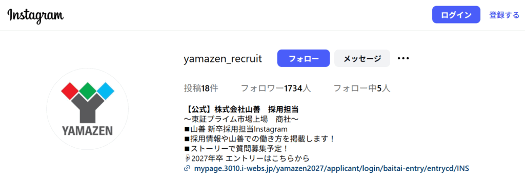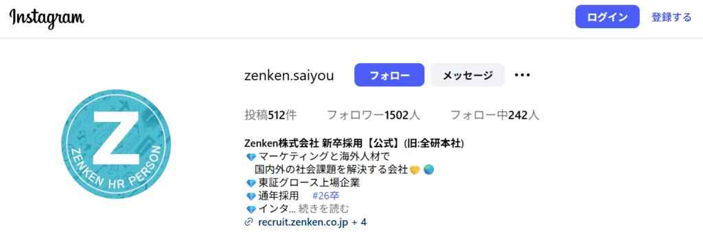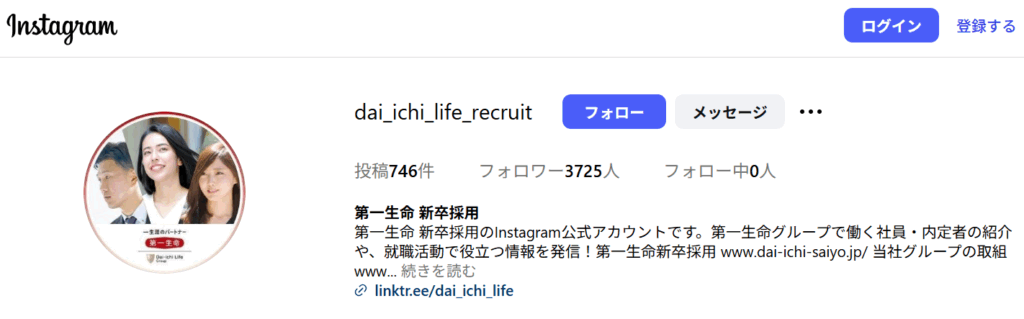 また、プロフィール欄から投稿一覧を視覚的に整理することで、閲覧者にすっきりとした印象を与えています。長期にわたる計画的な運用により、4,000人近いフォロワーを獲得しており、保険業界における採用ブランディングの成功例と言えるでしょう。