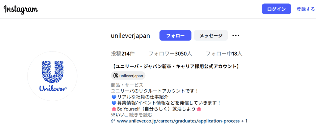 世界的な消費財メーカーのユニリーバ・ジャパンのInstagramでは、「マーケティング」や「サプライチェーン」といったビジネス用語の解説に加え、先輩社員のキャリア紹介やブランドストーリーを通じて、グローバル企業で働く魅力を効果的に発信しています。