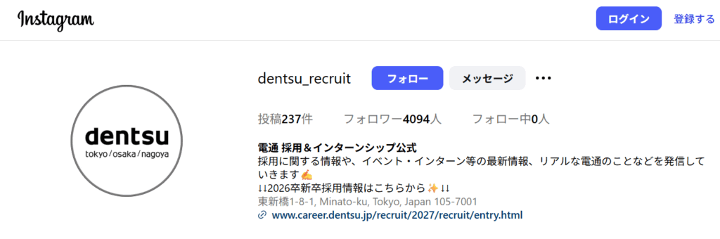 電通の採用アカウントは、広告のみならず商品などのプロデュースを得意とする電通らしいブランディングが強みです。デザインやキャッチコピーにこだわった投稿で統一され、投稿の色合いや字体のスタイリッシュさが閲覧者を魅了しています。