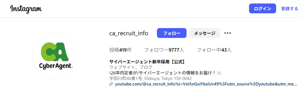 サイバーエージェントの新卒向けアカウントは、事業部紹介から内定者の選考体験談まで、動画を効果的に活用し、他社の選考でも参考になる内容が盛り込まれています。