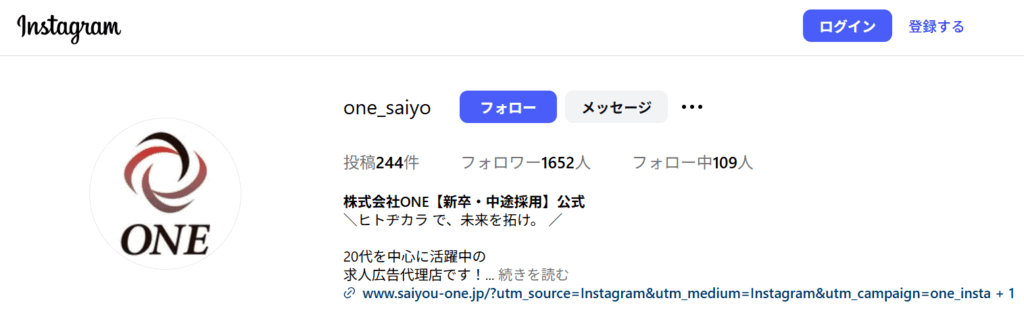 採用支援事業を展開する株式会社ONEでは、社員インタビューや会社説明会情報、オフィスの近隣グルメ、さらにはファッションや福利厚生、研修制度といった定番のコンテンツを充実させています。知名度が高くない企業でありながらも、Instagram経由での応募獲得や採用を成功させている点が印象的です。
